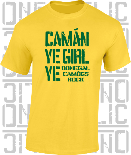 Camán Ye Girl Ye - Camogie T-Shirt Adult - Donegal