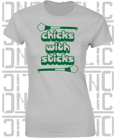 Chicks With Sticks, Camogie Ladies Skinny-Fit T-Shirt - Kerry