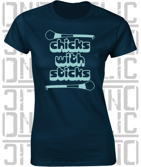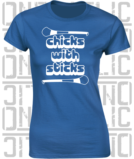 Chicks With Sticks, Camogie Ladies Skinny-Fit T-Shirt - Dublin