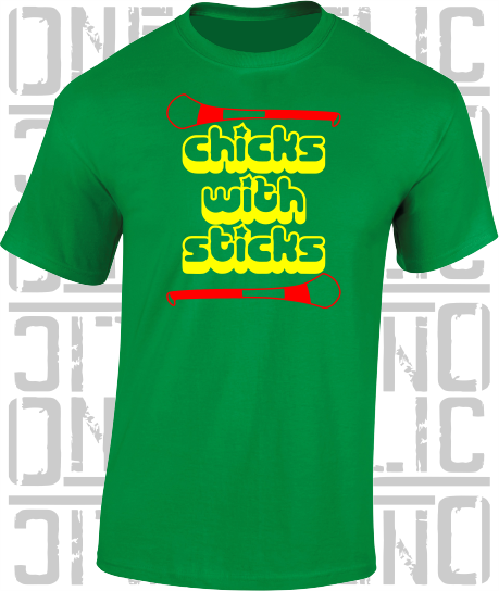 Chicks With Sticks, Camogie T-Shirt - Adult - Derry