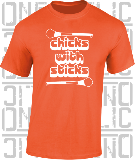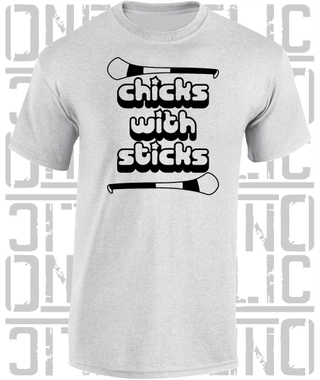 Chicks With Sticks, Camogie T-Shirt - Adult - Down