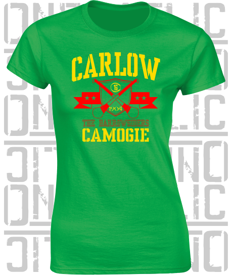 Crossed Hurls Camogie T-Shirt - Ladies Skinny-Fit - Carlow