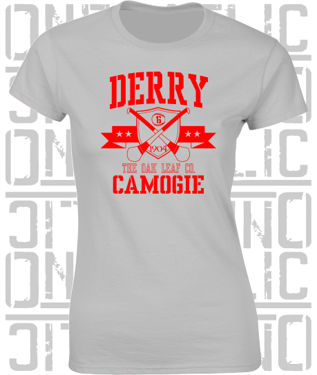 Crossed Hurls Camogie T-Shirt - Ladies Skinny-Fit - Derry