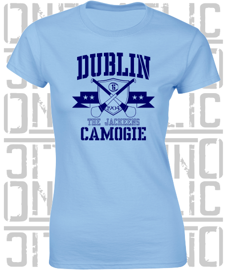 Crossed Hurls Camogie T-Shirt - Ladies Skinny-Fit - Dublin