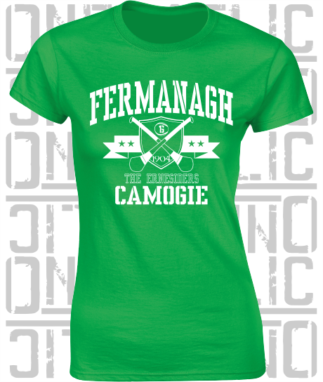 Crossed Hurls Camogie T-Shirt - Ladies Skinny-Fit - Fermanagh