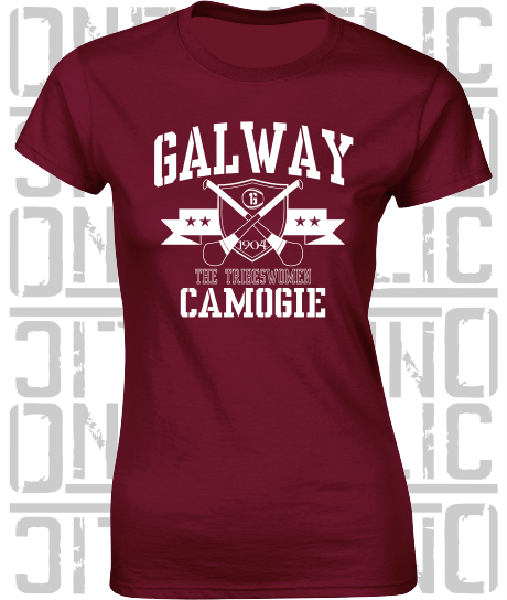Crossed Hurls Camogie T-Shirt - Ladies Skinny-Fit - Galway