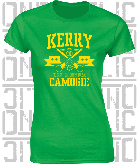 Crossed Hurls Camogie T-Shirt - Ladies Skinny-Fit - Kerry