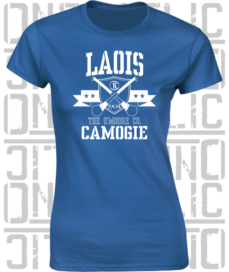 Crossed Hurls Camogie T-Shirt - Ladies Skinny-Fit - Laois