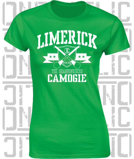 Crossed Hurls Camogie T-Shirt - Ladies Skinny-Fit - Limerick