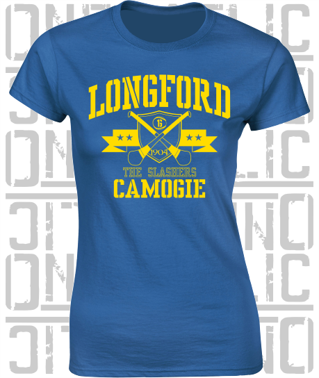 Crossed Hurls Camogie T-Shirt - Ladies Skinny-Fit - Longford