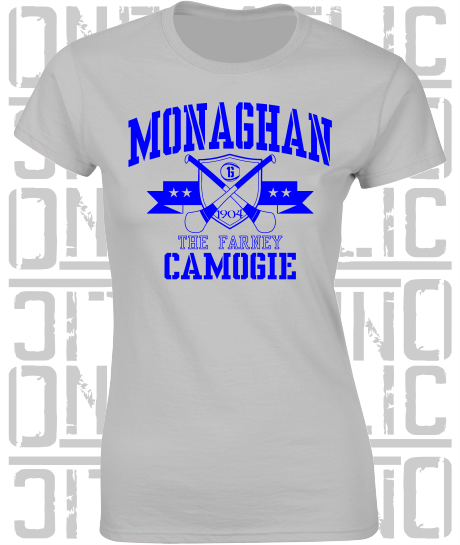 Crossed Hurls Camogie T-Shirt - Ladies Skinny-Fit - Monaghan