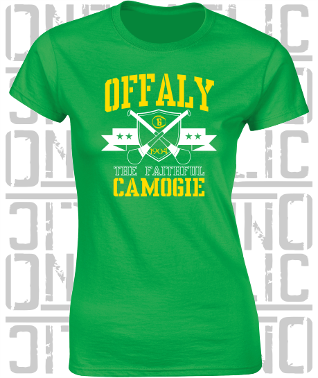 Crossed Hurls Camogie T-Shirt - Ladies Skinny-Fit - Offaly