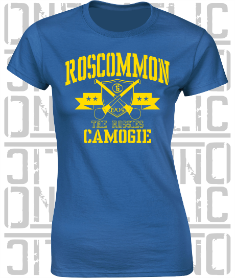 Crossed Hurls Camogie T-Shirt - Ladies Skinny-Fit - Roscommon