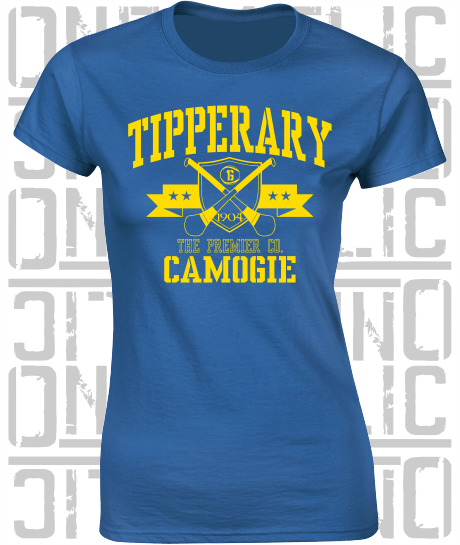 Crossed Hurls Camogie T-Shirt - Ladies Skinny-Fit - Tipperary