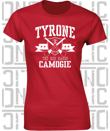 Crossed Hurls Camogie T-Shirt - Ladies Skinny-Fit - Tyrone