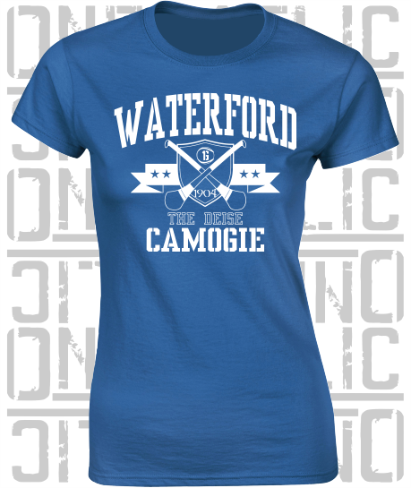 Crossed Hurls Camogie T-Shirt - Ladies Skinny-Fit - Waterford