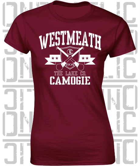 Crossed Hurls Camogie T-Shirt - Ladies Skinny-Fit - Westmeath