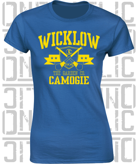 Crossed Hurls Camogie T-Shirt - Ladies Skinny-Fit - Wicklow