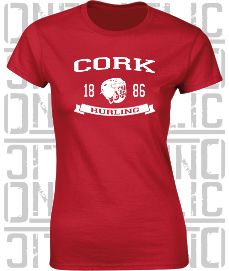 Hurling Helmet Design - Ladies Skinny-Fit T-Shirt - Cork