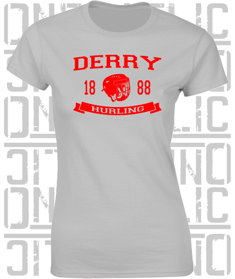 Hurling Helmet Design - Ladies Skinny-Fit T-Shirt - Derry