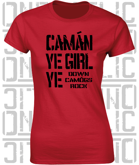 Camán Ye Girl Ye - Camogie T-Shirt - Ladies Skinny-Fit - Down