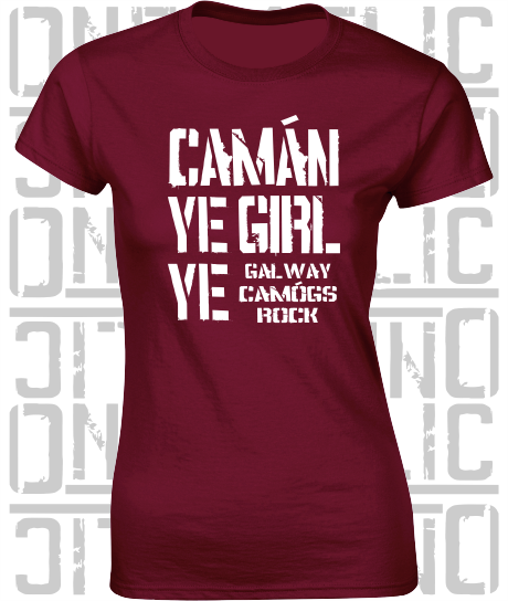 Camán Ye Girl Ye - Camogie T-Shirt - Ladies Skinny-Fit - Galway