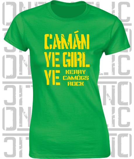 Camán Ye Girl Ye - Camogie T-Shirt - Ladies Skinny-Fit - Kerry