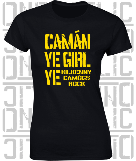 Camán Ye Girl Ye - Camogie T-Shirt - Ladies Skinny-Fit - Kilkenny