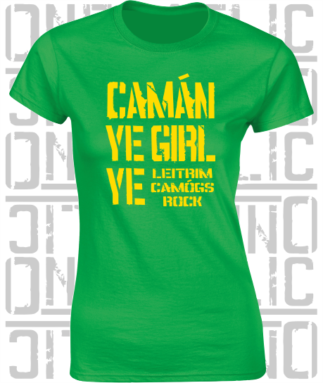 Camán Ye Girl Ye - Camogie T-Shirt - Ladies Skinny-Fit - Leitrim