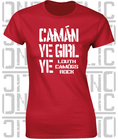 Camán Ye Girl Ye - Camogie T-Shirt - Ladies Skinny-Fit - Louth