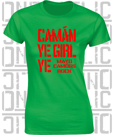 Camán Ye Girl Ye - Camogie T-Shirt - Ladies Skinny-Fit - Mayo