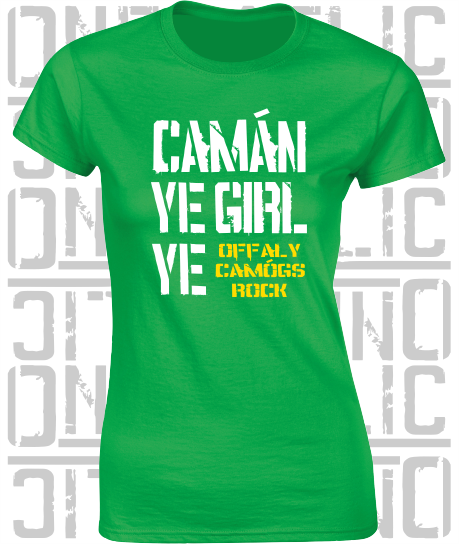 Camán Ye Girl Ye - Camogie T-Shirt - Ladies Skinny-Fit - Offaly