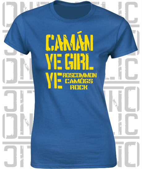 Camán Ye Girl Ye - Camogie T-Shirt - Ladies Skinny-Fit - Roscommon
