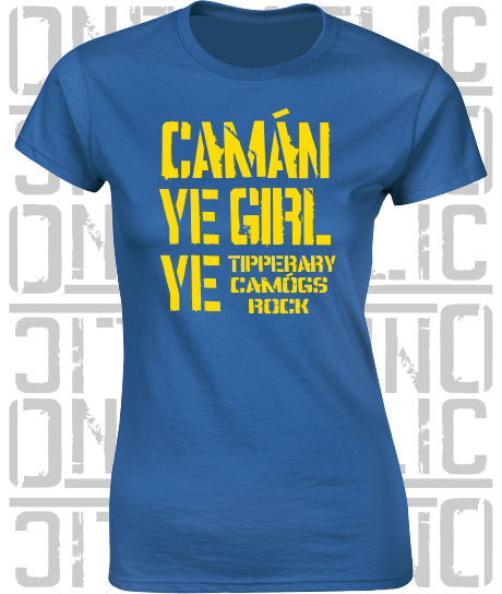 Camán Ye Girl Ye - Camogie T-Shirt - Ladies Skinny-Fit - Tipperary
