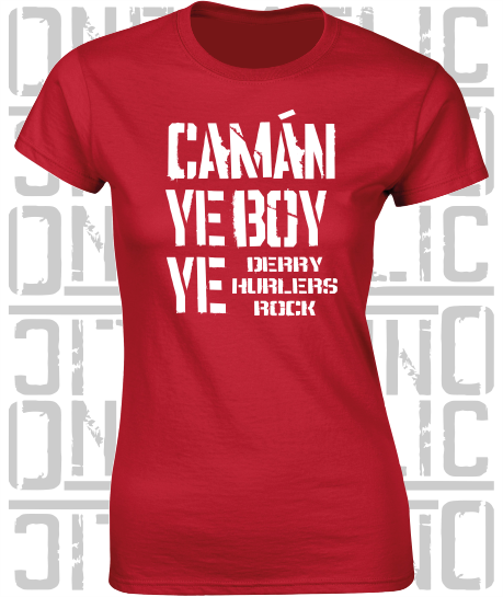 Camán Ye Boy Ye - Hurling T-Shirt Ladies Skinny-Fit - Derry