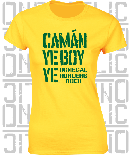 Camán Ye Girl Ye - Camogie T-Shirt - Ladies Skinny-Fit - Donegal