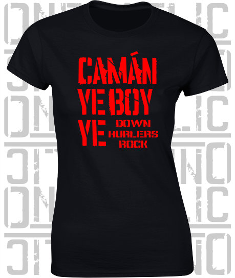 Camán Ye Girl Ye - Camogie T-Shirt - Ladies Skinny-Fit - Down