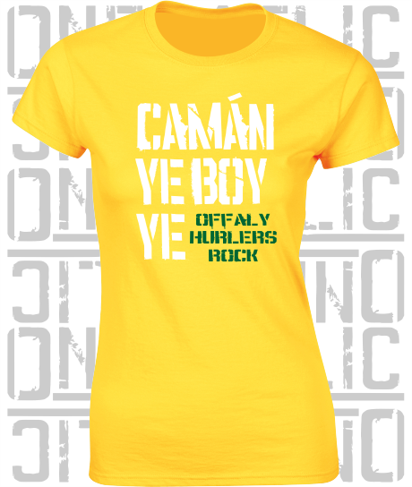 Camán Ye Girl Ye - Camogie T-Shirt - Ladies Skinny-Fit - Offaly