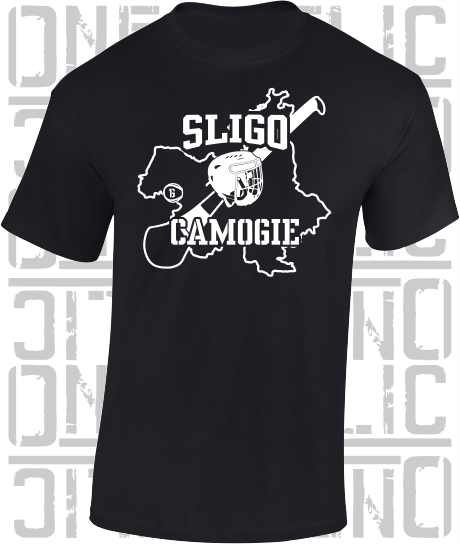 Sligo Camogie T-Shirt featuring the County Map Outline, in adult sizes.
