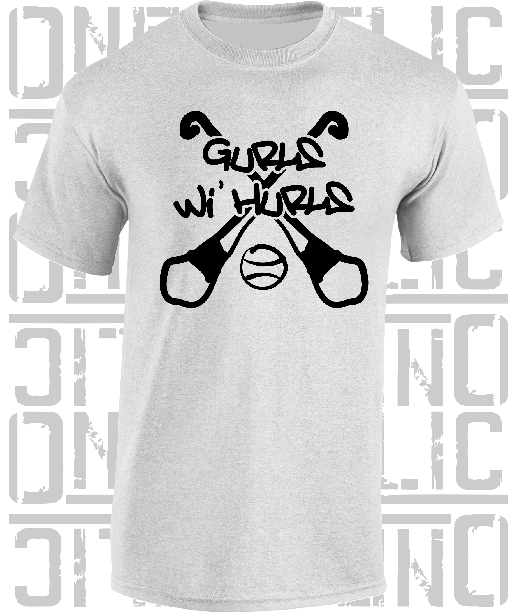 'Gurls Wi' Hurls' Camogie T-Shirt in Adult sizes.