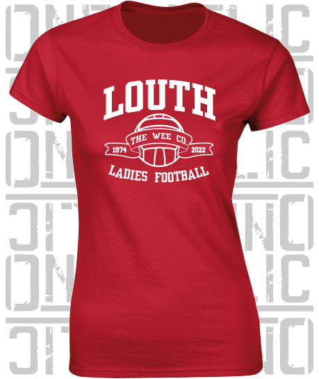 Louth Ladies Football T-Shirt in Ladies Skinny-Fit Sizes.