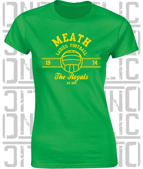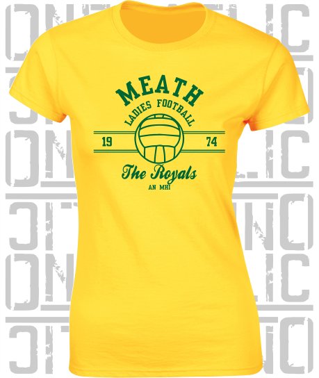 Meath Ladies Gaelic Football LGF T-Shirt in Ladies Skinny-Fit Sizes.
