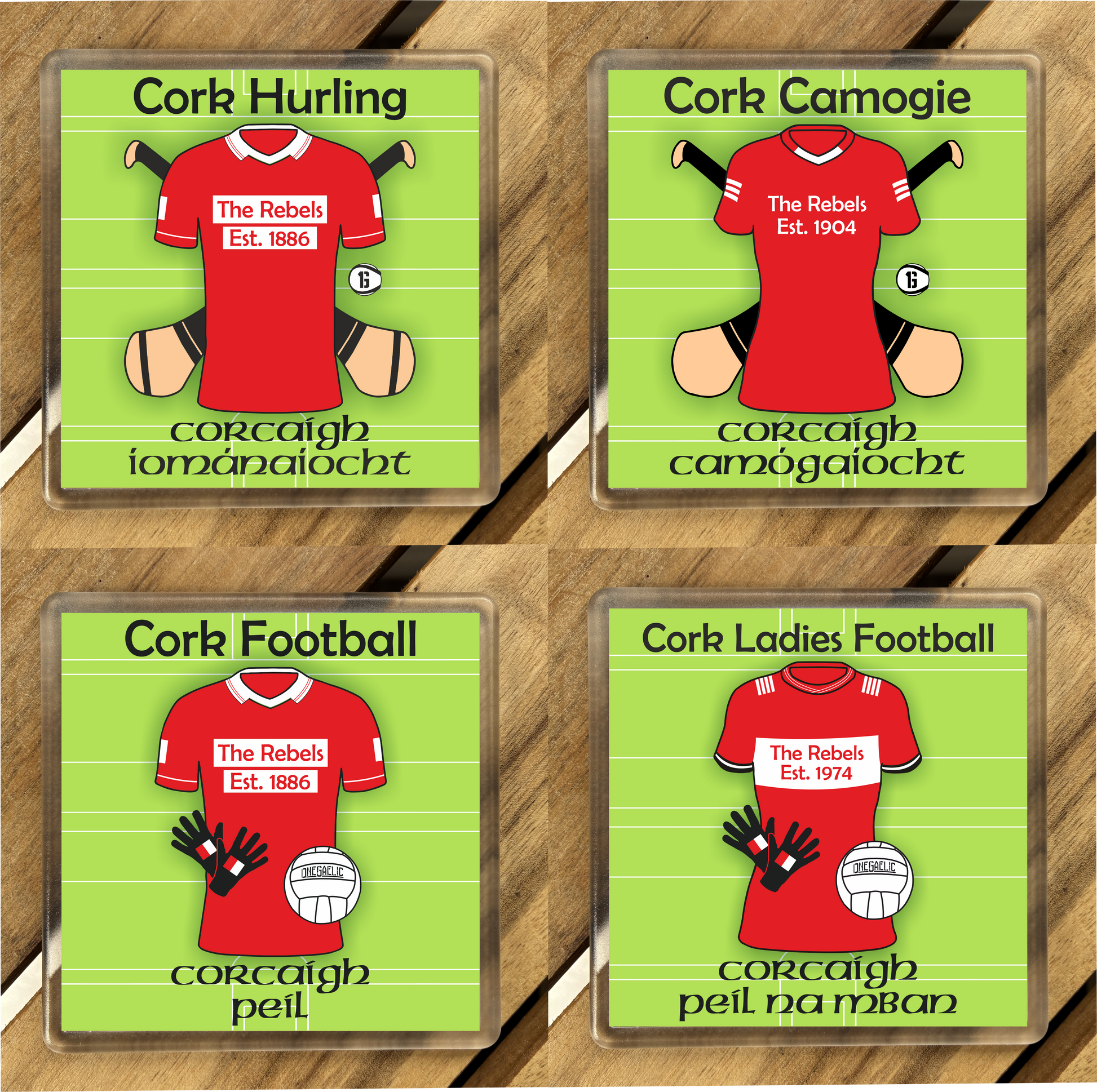 Set of 4 County Cork GAA Coasters, also available as single coasters, please choose from the options.